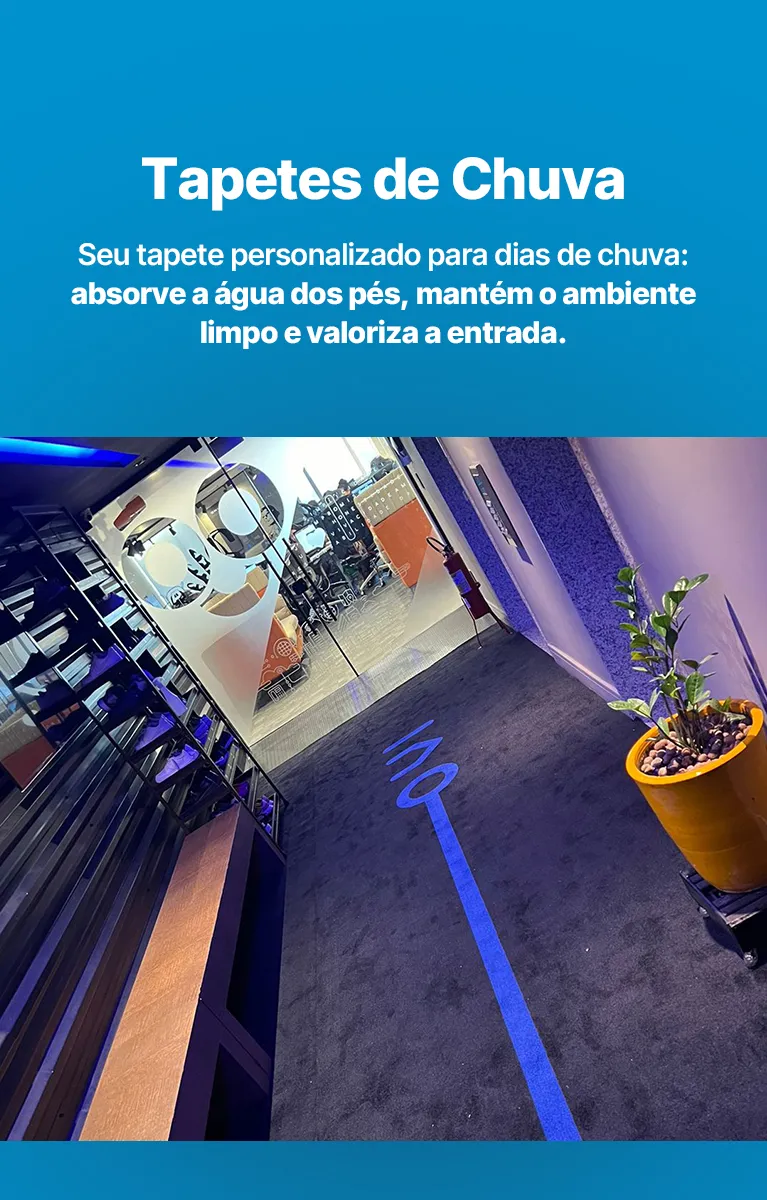Esse tipo de tapete pode ser utilizado em entradas de residências, empresas, condomínios, academias e lojas, sendo ideal para locais com alto fluxo de pessoas. Modelos como o tapete Cleankap e o tapete Dryclean oferecem excelente absorção de água e resistência. Além dos tapetes para chuvas, temos diversos tapetes capachos personalizados, faça seu orçamento.